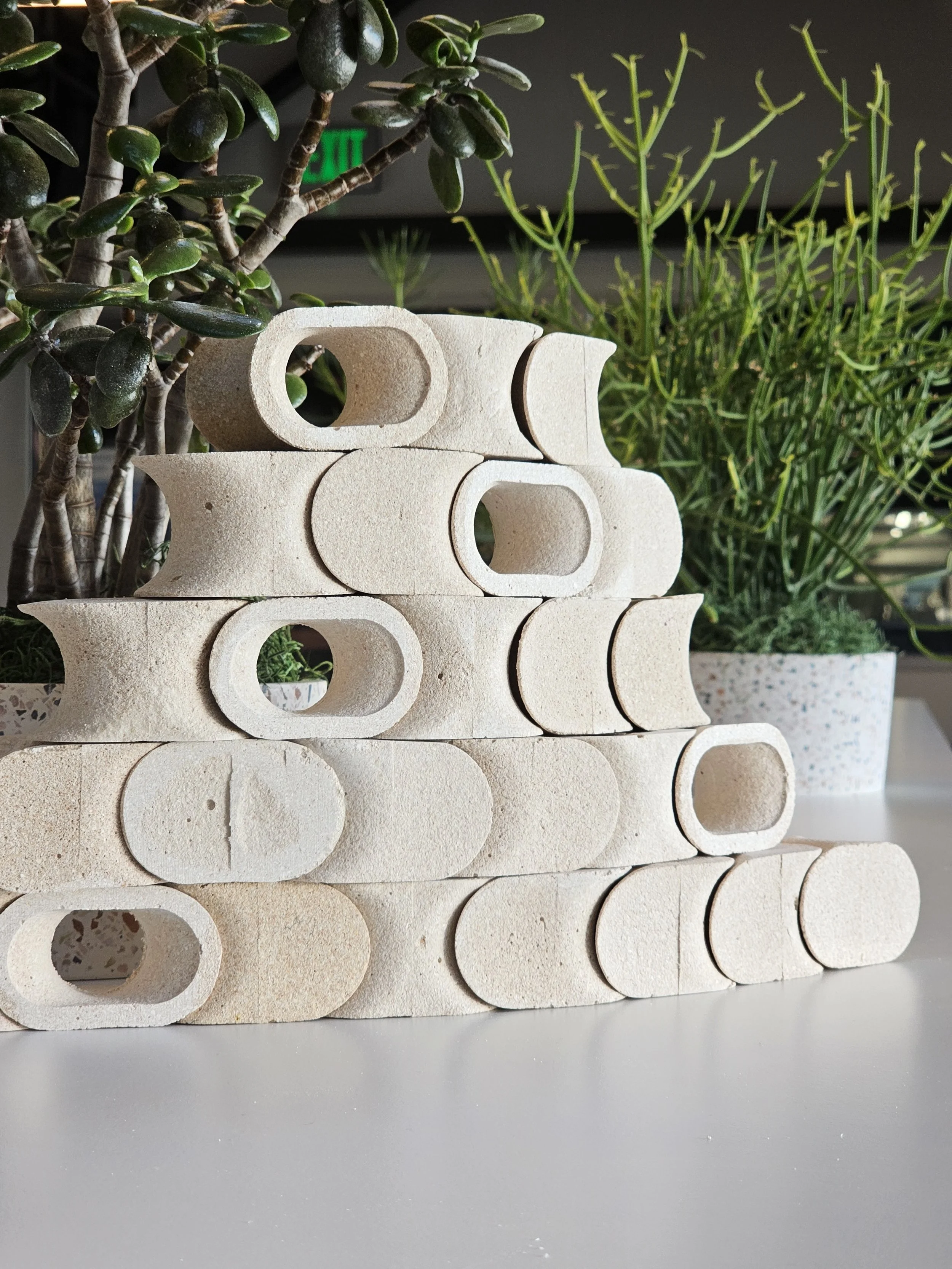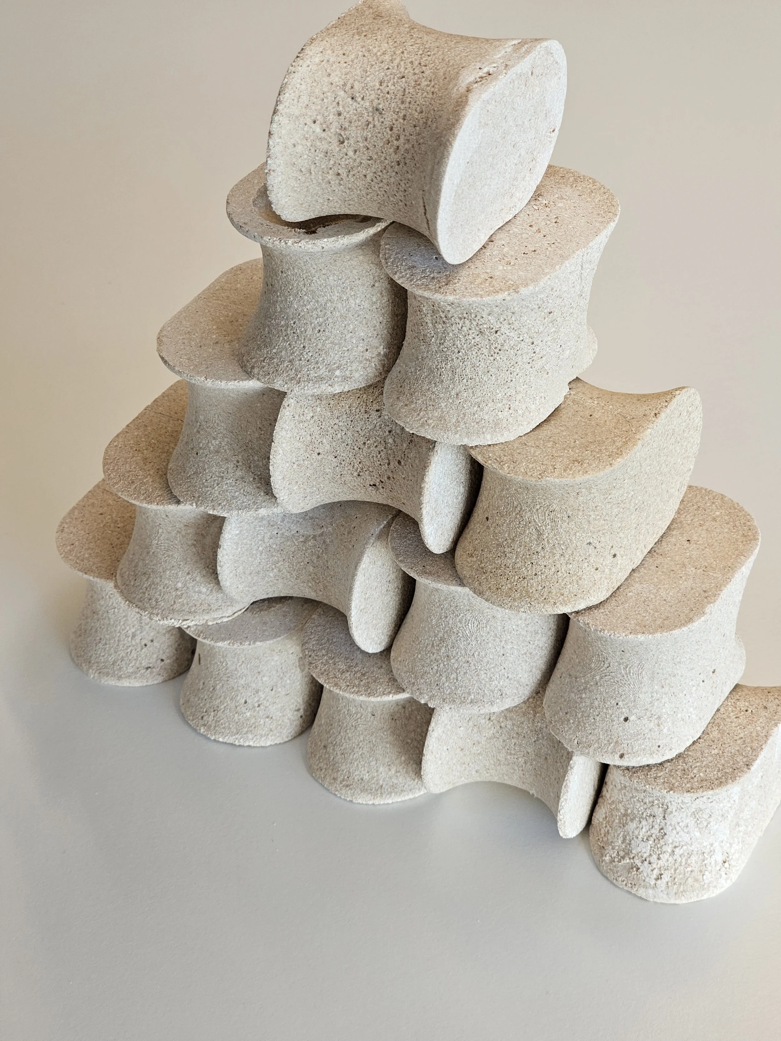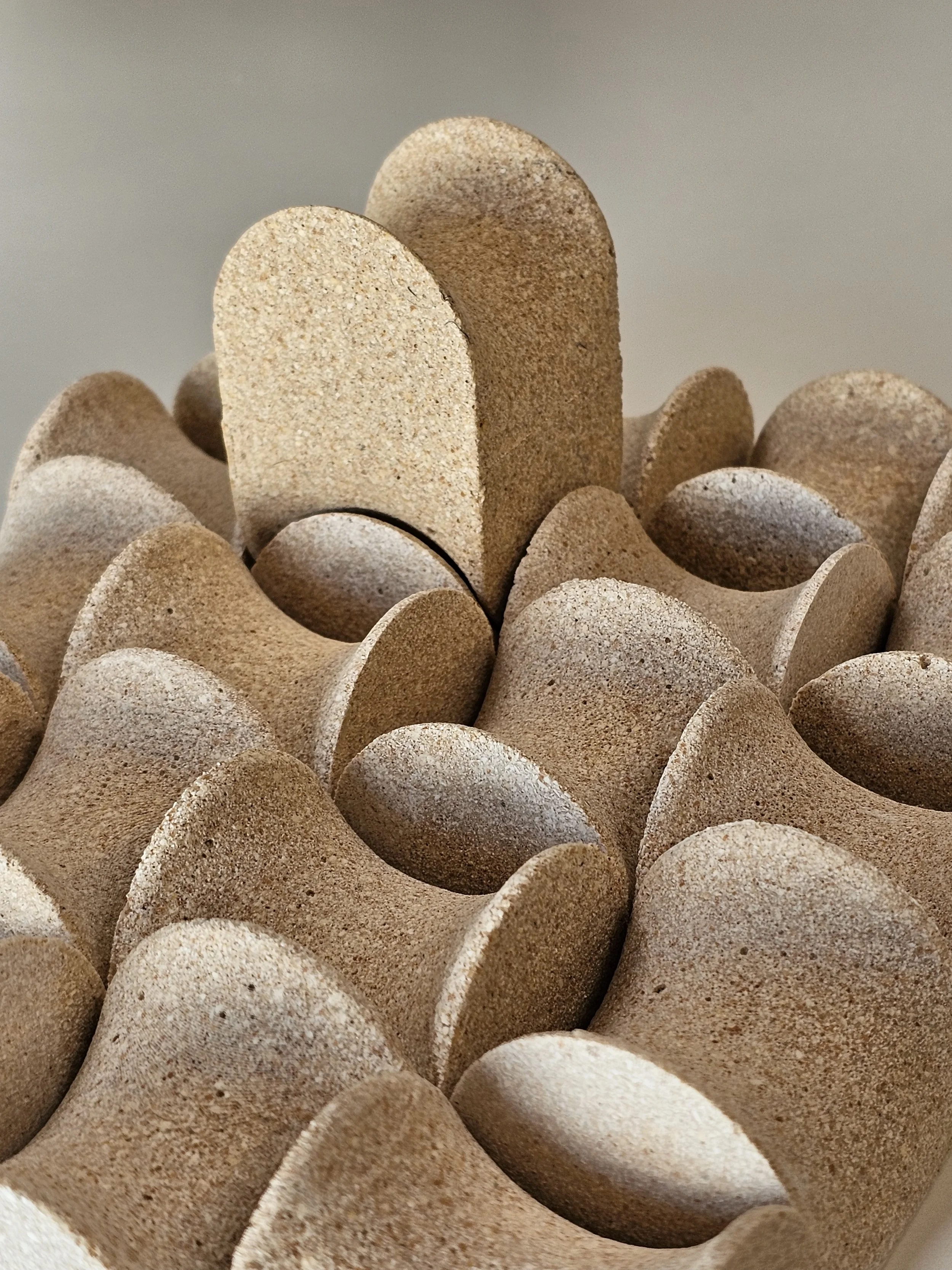 ‘Shell we dance?’ transforms the high volume of waste from the consumption of eggs and shellfish into a biomaterial which is harvested, processed and fabricated within the city into a new component-based building system. The project evolved through a collaboration with mathematicians and material engineers, and developed moldable components and a complimentary adhesive which were tested at multiple scales.The architecture students from the California College of the Arts, working in partnership with cellular biology graduate students at the University of California, San Francisco, looked at the chemical and biological structure of the material, exploring variable formulations and developing ways to enhance the structural capacity with the addition of living bacteria. These new assemblies formed the basis for investigating future design applications.